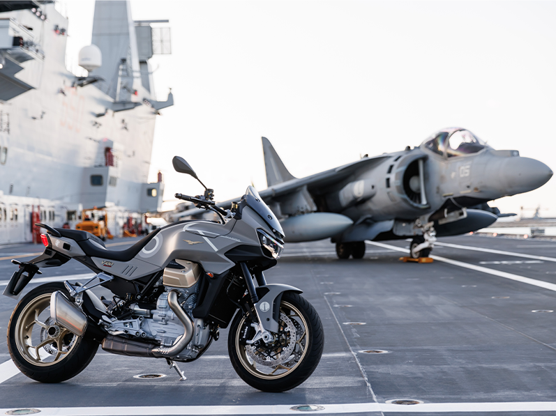 Cette édition de la toute dernière Moto Guzzi V100 Mandello a été créée à l’occasion du 110ème anniversaire de l’Aéronautique Navale fondée en 1913, dont les fondateurs de Moto Guzzi, Carlo Guzzi, Giorgio Parodi et Giovanni Ravelli faisaient partie.